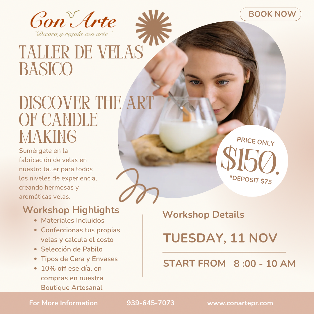 Ven y vé que divertida y costo efectiva es esta rama artesanal! NO te lo pierdas! Incluye los materiales que utilizarás en clase y llevas contigo las dos velas artesanales que confeccionas.